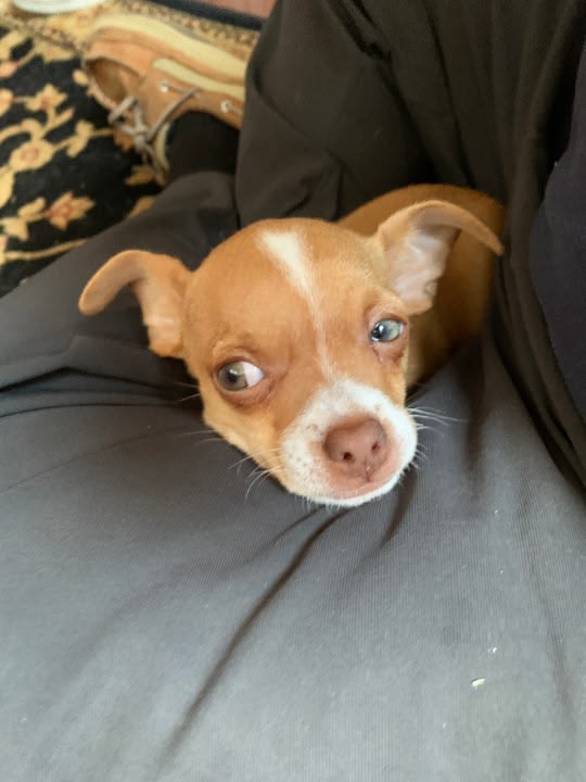 I took Max - our nine month old Chihuahua with me.. Max is essentially a golden retriever stuffed into a Chihuahua body because unlike his breed he is friendly... he meets people and he says ... OMG a new friend.. Well Max and I took our 93 Mercedes out of the garage for the second time in two days as it had been stored since November and drove it to pick up supplies for the sailboat... He got tired of lying on my lap so I put a folded towel down on the centre console and he got comfy on this.. Car is dark green with a light tan interior... Max is tan and and white with green / blue eyes... We had a fun day... Then it went back in the garage as rain is forecast....Its supposed to rain all day tomorrow so the nice car sits in the garage but at least we got our licks in today... He looks for any excuse to come with me and I don't need much of an excuse to spend time with him... Nice, handsome and smart is more than anyone could ever want in a buddy... and yes he is a triple threat... and he looks even MORE handsome in the Mercedes..