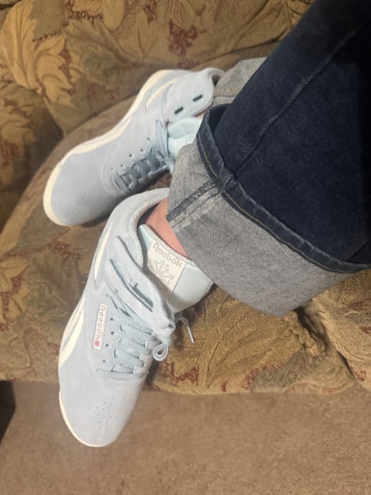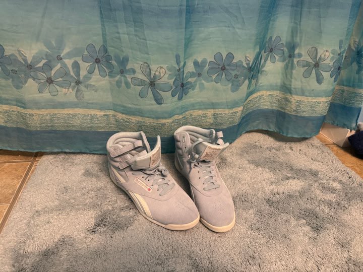 COUSIN ALICIA’S YUMMY NEW BLUE REEBOKS!!!! Before I could approach them, she told me to go back downstairs and she would slip them on after she showered!!! OHBOYOHBOYOHBOY!!!! I’m not gonna get any sleep tonight!!