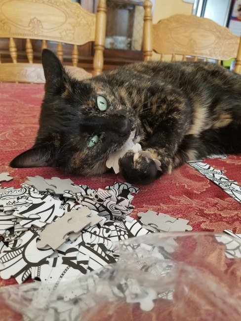 This is one of a cat I don't know. He just ran up to me one day, so I let him play with my laces.