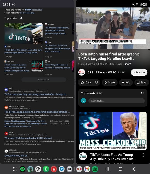 see you can even split the screen so its like you have two phones in your hand at the same time
