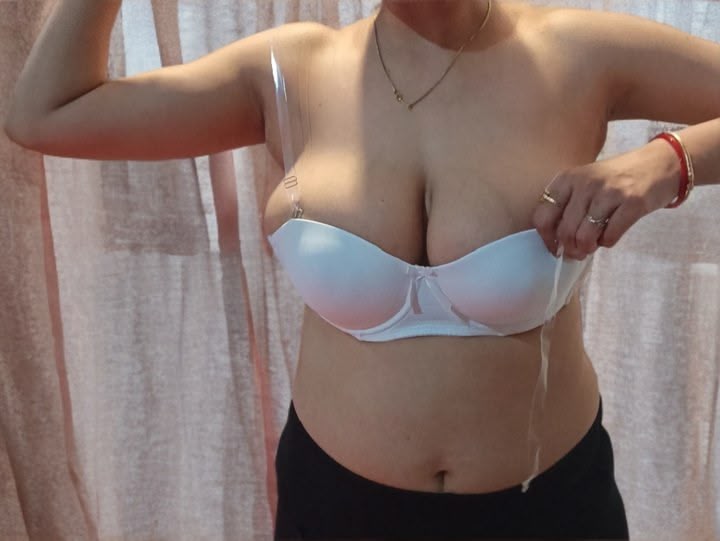 You need a larger cup size on your bra (the number is the band size and the letter is the cup size in case you didn't know) we have almost the same figure 😅
