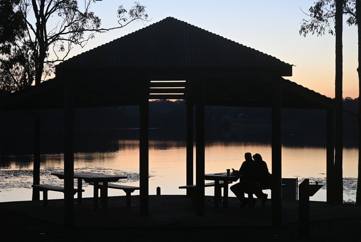 Elderly couple sitting at a rest area