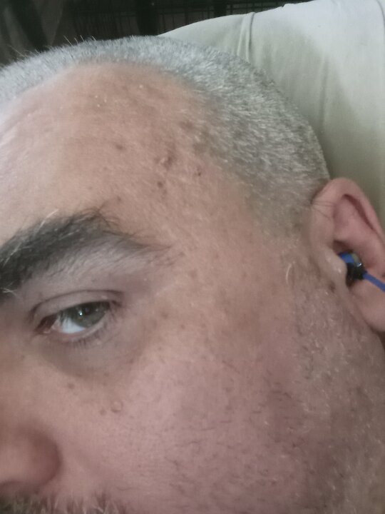 The marks on the man's forehead appear to be small, indented scars, possibly from acne or another skin condition that has left pitted marks on the skin. These types of scars are often referred to as "atrophic scars" and can result from severe acne or other conditions that damage the skin's deeper layers.