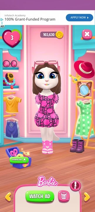But for whatever reason it made me start all over from last time I had her (Usually it saves my progress on my Google Games account for when I redownload it to my phone)...But I didn't spend no money on it last time so that's a plus... And I'm getting a fresh start so it's ok... But Yeah right now on there their doing a "Barbie" promotion for whatever and it made me make her a Barbie Outfit... I'm a guy.... I'm not that great a Designing clothes... So this is the Barbie outfit I made her... Best I could do LOL But Yeah...🐱🐱🐱❤❤❤