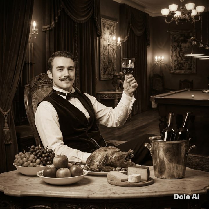 I sit at my table en grand seigneur,