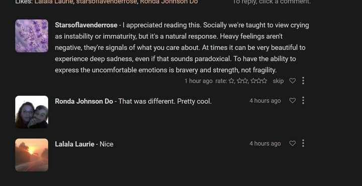 It was an unpredictable move. It also insulates me somewhat. You see Although sensitive women if we had a competition for who was the most sensitive would beat me by such a huge margin there's no point in even attempting to compete in such a contest, I am more so than the average male both In terms of being highly sensitive to sensory phenomenon and being emotionally sensitive. So as long as I don't bring that kind of energy towards women it kinda helps pressure them to give me permission to feel more than usual.