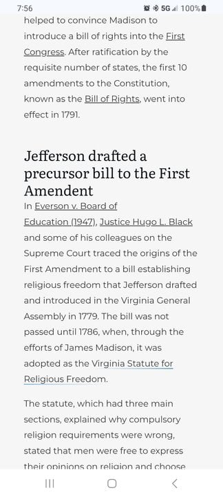 The Freedom of Religion provision he wrote and helped pass in Virginia also was a model for the First Amendment to the Constitution, but those are about the only two connections.