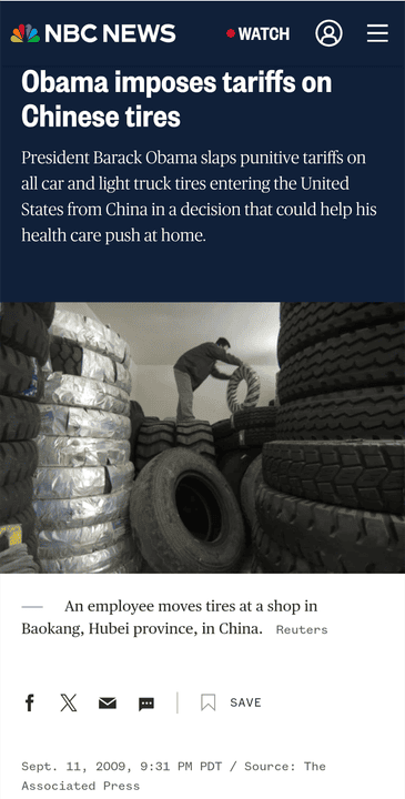Barack Obama imposed tariffs on Chinese tires in 2009 to protect American manufacturers from a surge in imports that was harming the domestic industry. These tariffs were part of a broader strategy to enforce trade laws and support American workers.