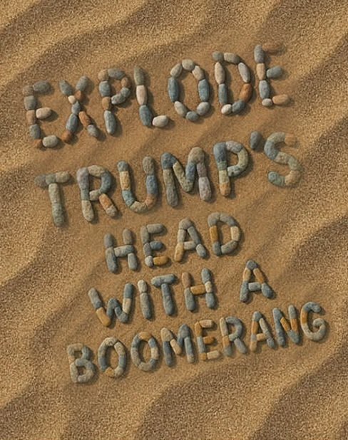 The photo, posted on Comey's Instagram account, depicted a collection of rocks which he claimed to have found sitting in a natural formation. According to Comey, it was entirely a coincidence that they happened to spell out "EXPLODE TRUMP'S HEAD WITH A BOOMERANG."