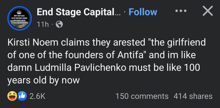 ICE Barbie, Slayer Of The Puppy, First Of Her Name, Kristi Noem, announces the capture in Portland Oregon, taken by the Texas National Guard, under what remains of Portland Oregon, of the girlfriend of one of the founders of ANTIFA.