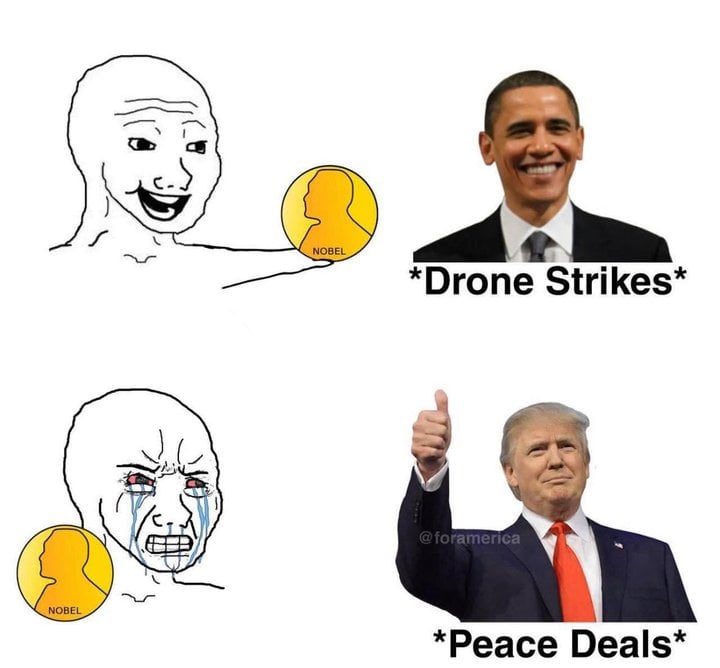 This guy named Barack who ordered a drone strike on an American citizen: Ope, our mistake, Nobel Committee already gave him one.