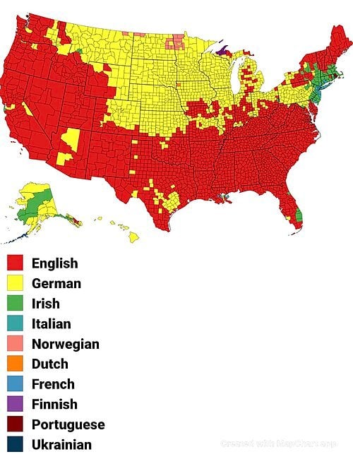 In any case, your map doesn't tell actual numbers of people, just which ethnic group might be in a plurality (no matter how slight) in each county, no matter how small the population of that county might be.