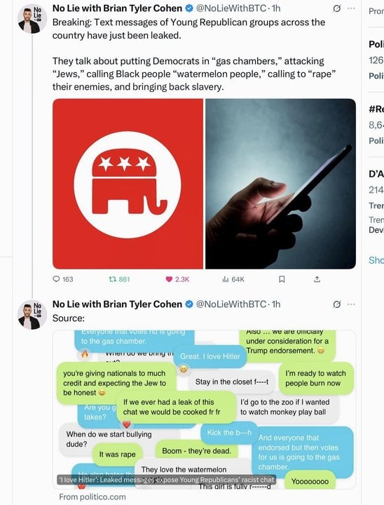 @ron122 It's not that democrats are more violent, it's that when conservatives do it, you think it's right so you don't view it as violence that's why you can't answer. For instance you agree with the young republicans and don't think they're wrong. That's why you can't speak up when Trump does something horrible or police brutality, you think it's right. So to you, all democrats are violent but not republicans.