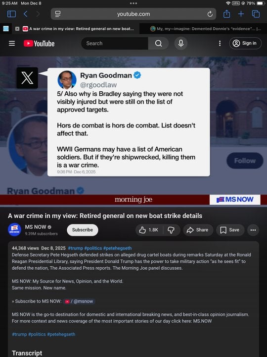 This begins a review of just how reckless and unfit Pete Hegseth is as SECDEF, just how incompetent and deceitful Demented Donnie is as pseudo POTUS, just how disappointing Admiral Bradley is as he betrays his oath of office in servitude to a clearly UNFIT and dishonorable convicted felon posing as POTUS, and why these strikes in the Caribbean and Pacific constituent INTERNATIONAL WAR CRIMES and EXTRAJUDICIAL MURDERS!