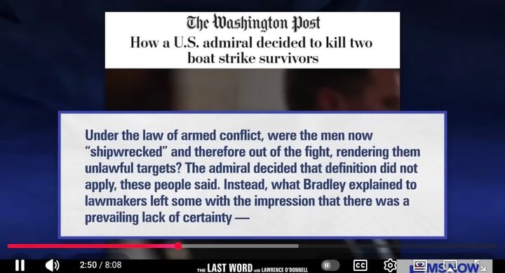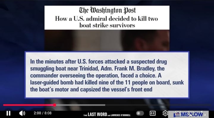 MS NOW’s Lawrence O’Donnell details new reporting for The New York Times and The Washington Post on how the decision was made to kill the two men who survived the first boat strike in the Caribbean.