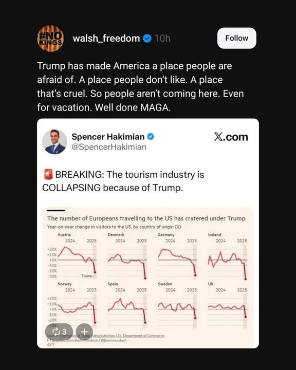 And no one is travelling to the US. Being asked to essentially show you haven't been mean about Trump is destroying the US tourism industry.