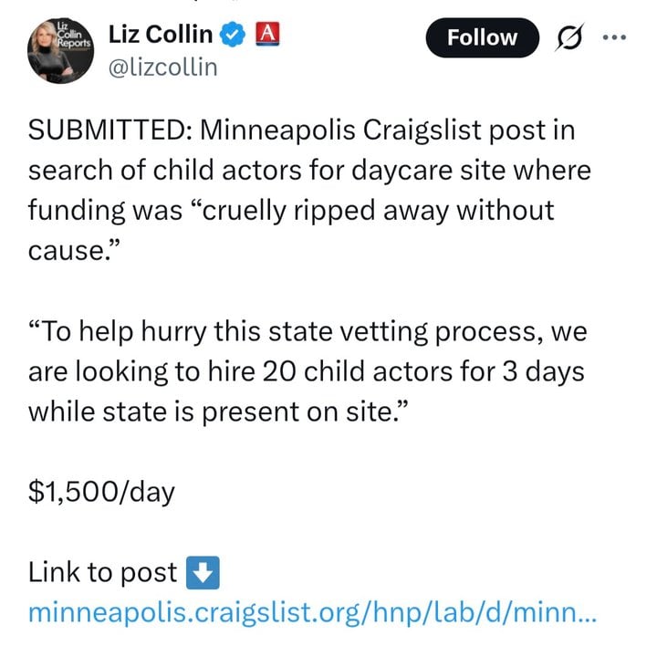 under the age of 5, to the tune of $90K over 3 days to pretend to be attending the day care in order to continue defrauding tax payers.
