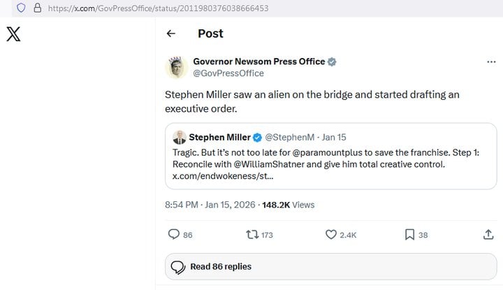 I think Obergruppenführer Miller has confused Charlie Kirk (gun deaths are "worth it") with Captain James Tiberius Kirk. Here are some quotes from the James T. Kirk character: