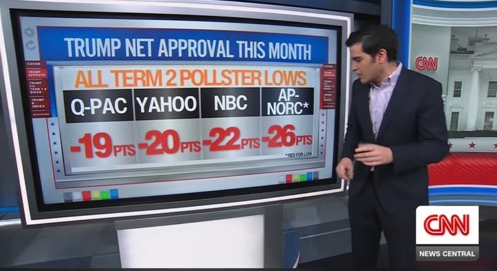 One of the Demented Donnie trolls on here tried to tell me last week that tRUMP’s polls were at an all time high—the real data tells the real story!