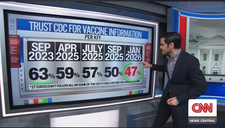 That slide shows the dramatic negative impact on the credibility of the HHS, FDA, CDC, and the other Federal agencies entirely attributable to Robert F. Kennedy, Jr.’s incompetence and leadership failure.