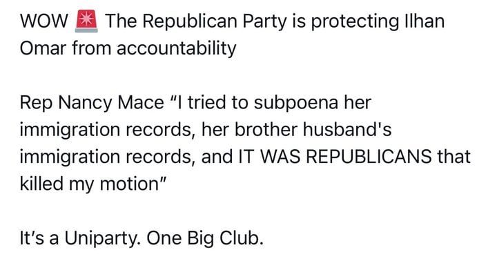 Now, Woods says he’s fed up with the Republican Party itself. Taking to X, he criticized congressional Republicans for blocking an effort to investigate Democratic Rep. Ilhan Omar, arguing that some GOP lawmakers aren’t doing enough to hold the opposition accountable.