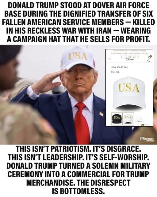 And he wants to milk every appearance for political purposes, even if it's a dignified transfer ceremony. Even Fix realized he done fuck up, and aired a video from his first term, when he was not wearing a baseball cap to try to fool MAGAs.