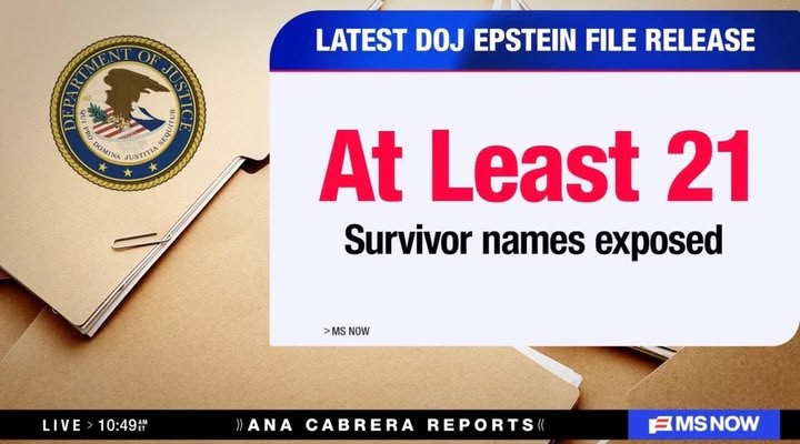 The Justice Department released more documents on Jeffrey Epstein. An MS NOW analysis found that the names of at least 21 survivors were exposed in this current release! Danielle Bensky, an Epstein survivor, joins Ana Cabrera to share her reaction to a third release leaving her name unredacted.