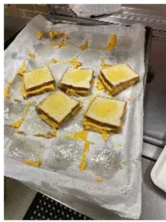 Photo above - grilled cheese was the 2nd most popular public school cafeteria lunch where I briefly worked. If you guessed pizza was number one, give yourself a gold star. Not shown - anything resembling broccoli, carrots, peas, green beans, or cauliflower.