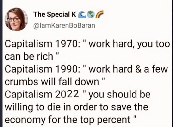 Trickle Down Economics fucked the world. But during Lockdown in 2020 when the world couldn't run without essential workers. We dropped the ball and didn't strike for a better deal...
