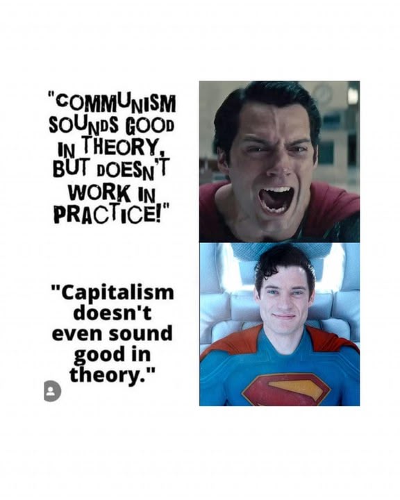 In theory Communism allows the Commune to control you, while in theory, capitalism allows the wealthy to control you.