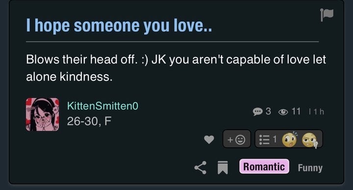 @KittenSmitten0 Oh, sweetheart. Are you okay? Like, seriously. Are you? Because the unhinged is strong with you.