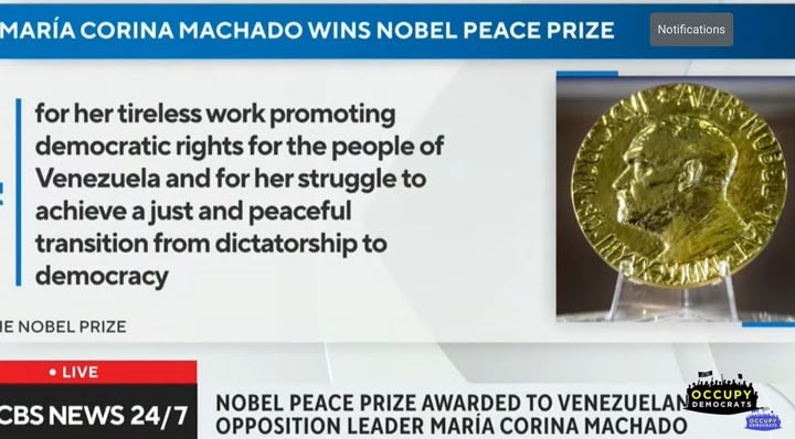 2025 Nobel Peace Prize awarded to Maria Corina Machado, Venezuela opposition leader, for promoting democracy!