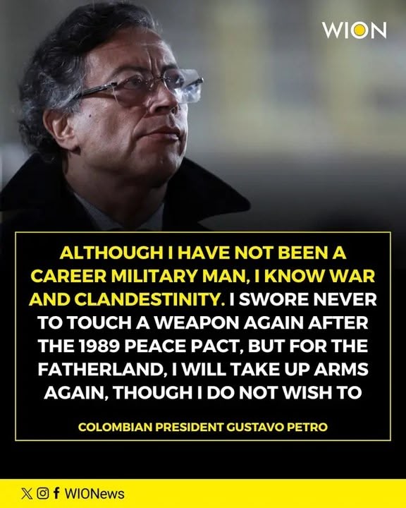 Petro, who was a leftist guerrilla before demobilising in the 1990s, also said, "I swore not to touch a weapon again ... but for the homeland I will take up arms again."