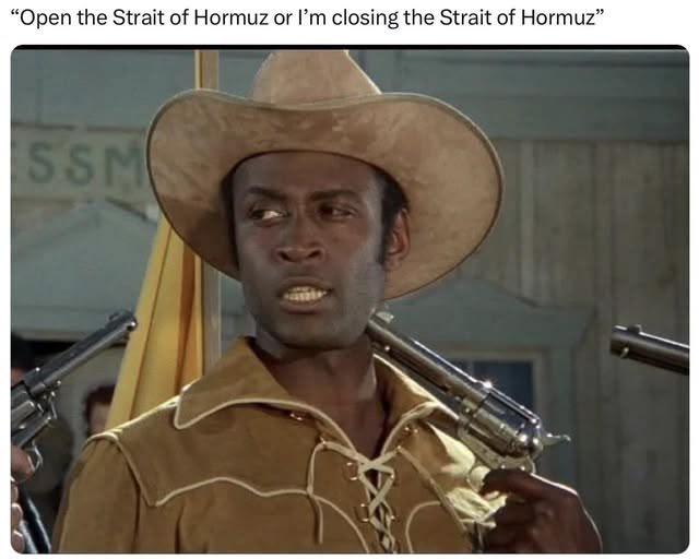 As opposed to last week when Iran closed it and Trump wanted it open...I need to get a program, I'm starting to get the actors confused ....