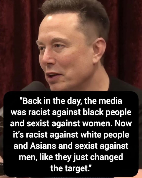 Elon Musk: "Back in the day, the media was racist against black people and sexist against women. Now it’s racist against white people and Asians and s