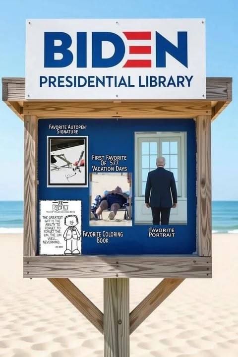 Biden Presidential library? :D :D :D 🤣🤣🤣Meme courtesy of Musicman. Post Comment Receive notifications Add a comment...