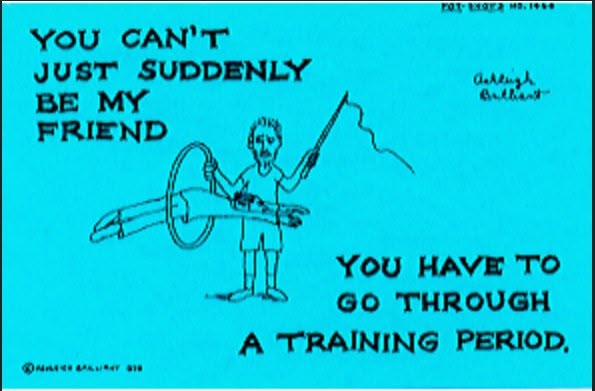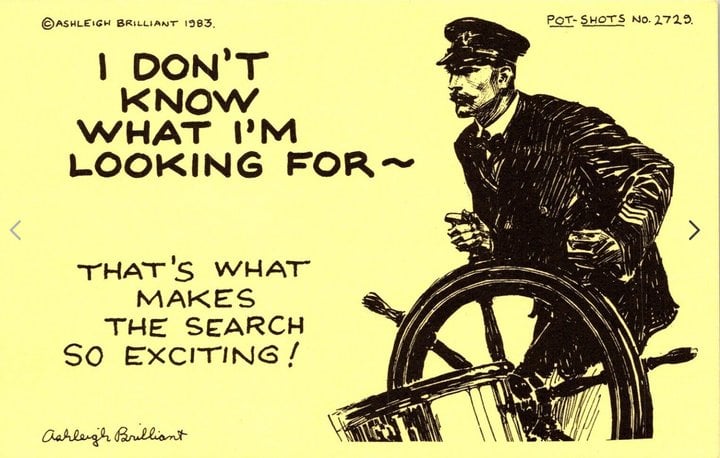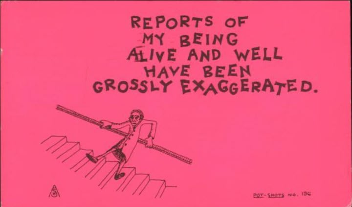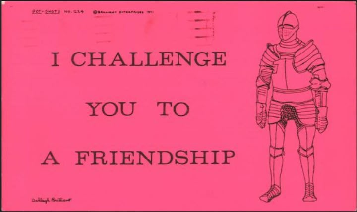 Originally from England, he was the author of the witty postcards he both penned and illustrated called Pot-Shots. I began collecting them when I was about 13 and now I have a couple thousand. He lived in Santa Barbara and occasionally sent me catalogs over the years. Here are some examples of his craft: