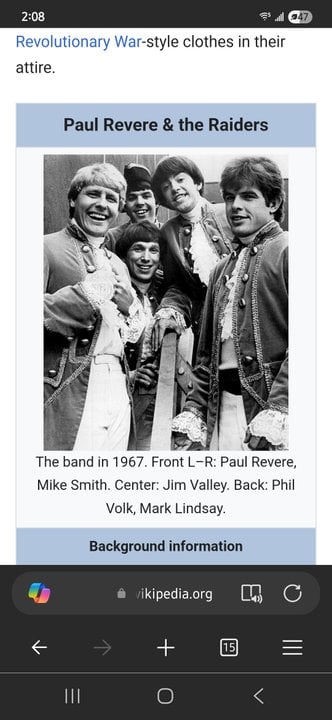 @QCDog2659 There is no Paul Revere, you are thinking of Mark Lindsay, the lead singer of Paul Revere and the Raiders, Smitty, their drummer, lived two doors down from my paternal Great Grandparent's house in Portland, Oregon, back in the early 70's.