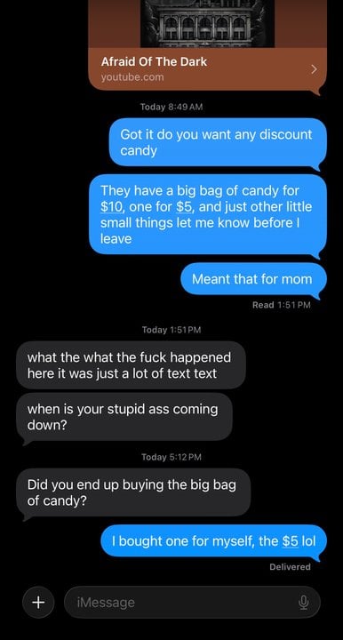 I’m an idiot Ha my bro responding to an accidental text. I genuinely miss him so much. I don’t know when I will be able to see him :( Post Comment Receive notifications Add a comment...