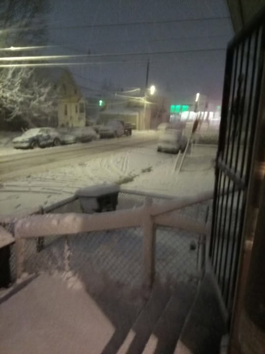 Tried to go out, everything's closed. Visibility 10 ft at best, driving. Roads are awful.