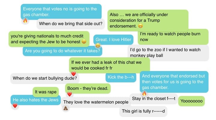 Some of those involved referred to Black people as monkeys, referred to opponents in gas chambers and spoke of raping enemies.