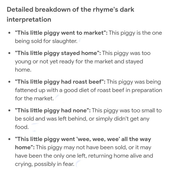 @Sutten OMG, wow, another frightening nursery rhyme! So many fables are frightening when you review them carefully.