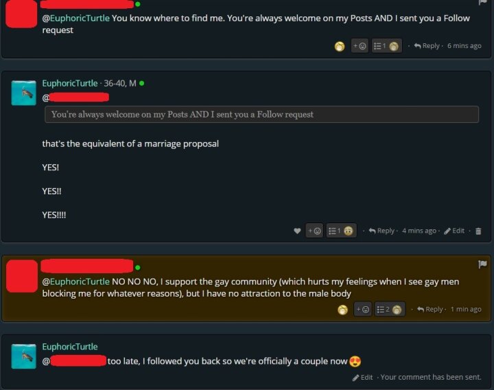 If someone says "You're always welcome on my Posts AND I sent you a Follow request" on a comment then surely that is the SW equivalent of a marriage proposal or at the very least "come back to my place and chill" right?