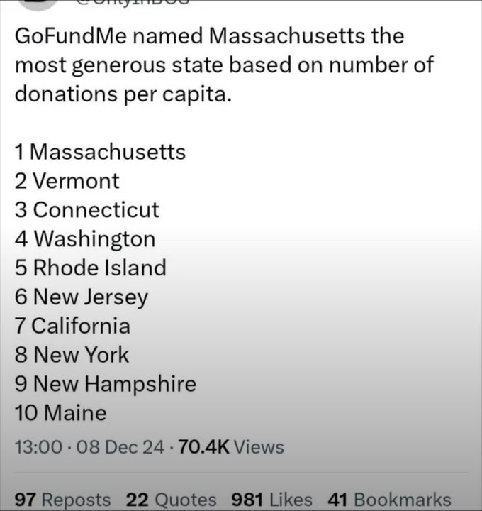 Just recently, the peeps over at GoFundMe declared we New Englanders to be the most generous: