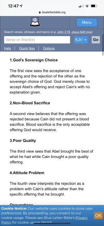 And actually I looked up many “Christian “ sources and they themselves differ Some say it’s the impure intention / heart of Cain Some say it’s because it’s not a blood sacrifice etc different possible opinions