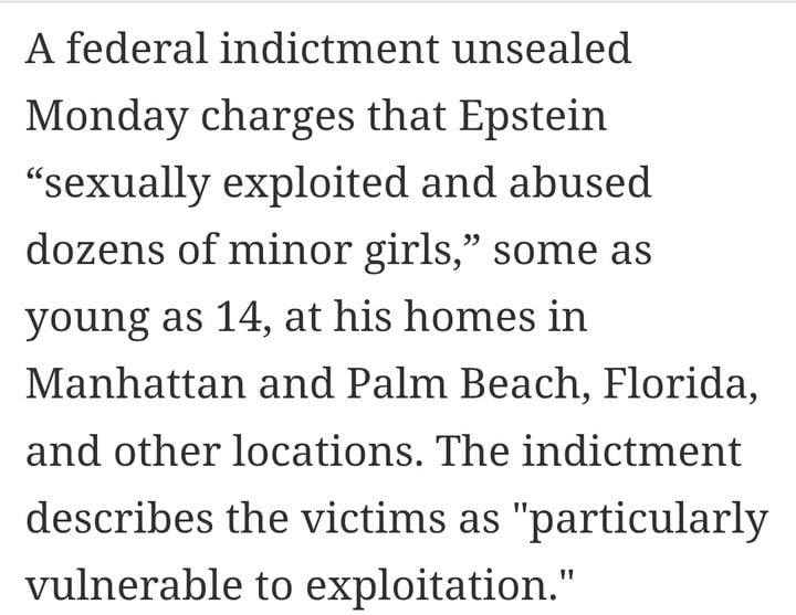 @LordShadowfire so given that the FBI haven't found any evidence of any wrongdoing on behalf of anyone else other than Epstein and Ghislaine Maxwell, it is likely that all the underage girls were recruited for Ghislaine Maxwell, and everyone else was just partying with the older girls.