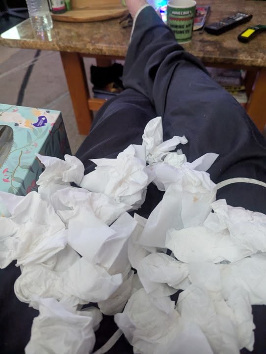 Slept well-ish. Woke up, sat up - and suddenly my nose is this bottomless pit of everything goopy.