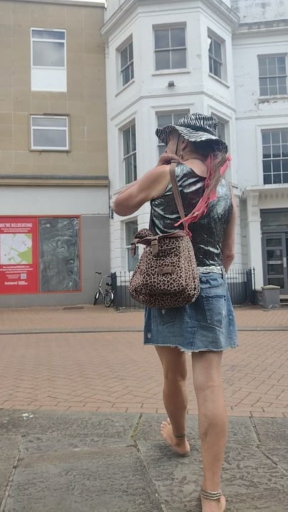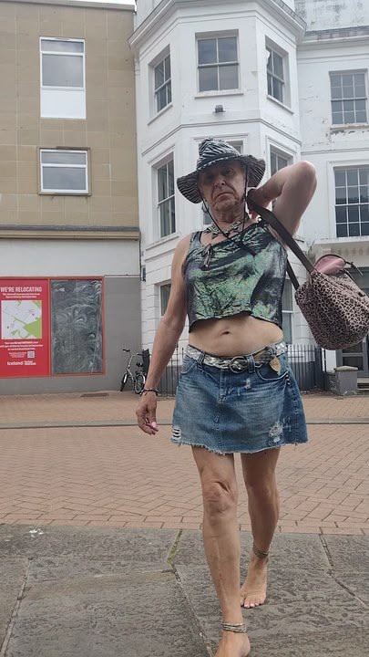 Today's outfit a distressed denim miniskirt, a short silver and black sleeveless top