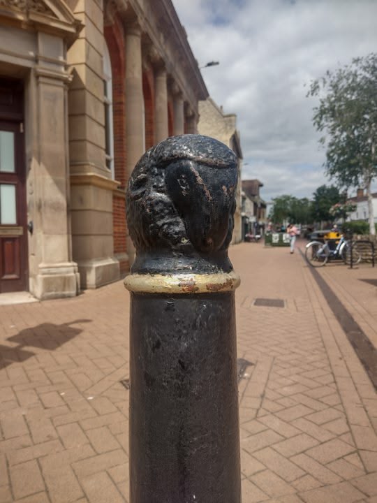 Seen on my walk. The main shopping street is Sheep Street and the bollards at the Market Square end have sheep's heads.