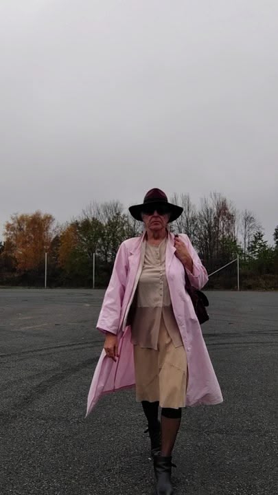 Today's outfit is a trio of skirt, top, and jacket that look a little like a suit but are in fact from three different brands topped with my pink coat and a broad brimmed hat